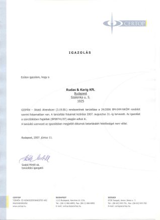 Tisztelt Jegyző Asszony/Úr! Felhívjuk figyelmét, hogy az iratkezelés egységesítése és korszerűsítése érdekében, a hatályba lépett jogszabályok szerint, a közfeladatot ellátó szervek 2008. január 1-étől kizárólag tanúsítással rendelkező iratkezelési szoftvert alkalmazhatnak. A Rudas & Karig Kft. teljes körű termékminősítési eljárás megindítását kezdeményezte a kijelölt minősítő CERTOP Kft. közreműködésével a GISPÁN Integrált Önkormányzati Térinformatikai Rendszer Iktató alrendszerére. A minősítési eljárás befejeztével a termék eleget tesz a 24/2006 (IV.29) BM-IHM-NKÖM jogszabályban, és a 195/2005. (IX. 22.), 335/2005 (XII.29) kormány rendeletekben előírt minősítési kötelezettségnek, mely biztosítja a Közfeladatot ellátó szerveknél alkalmazható iratkezelési szoftverekkel szemben támasztott követelményeknek való megfelelést.